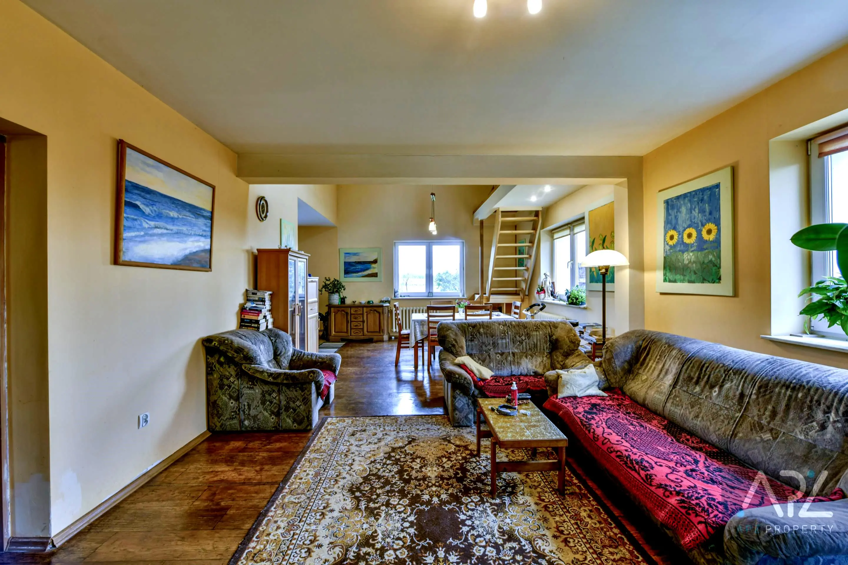 Dom jednorodzinny 1kondygnacyjny z użytkowym poddaszem o powierzchni 195,20 m2 zlokalizowany na działce nr 570/3 o łącznej powierzchni 10.218 m2 i składa się z następujących pomieszczeń: