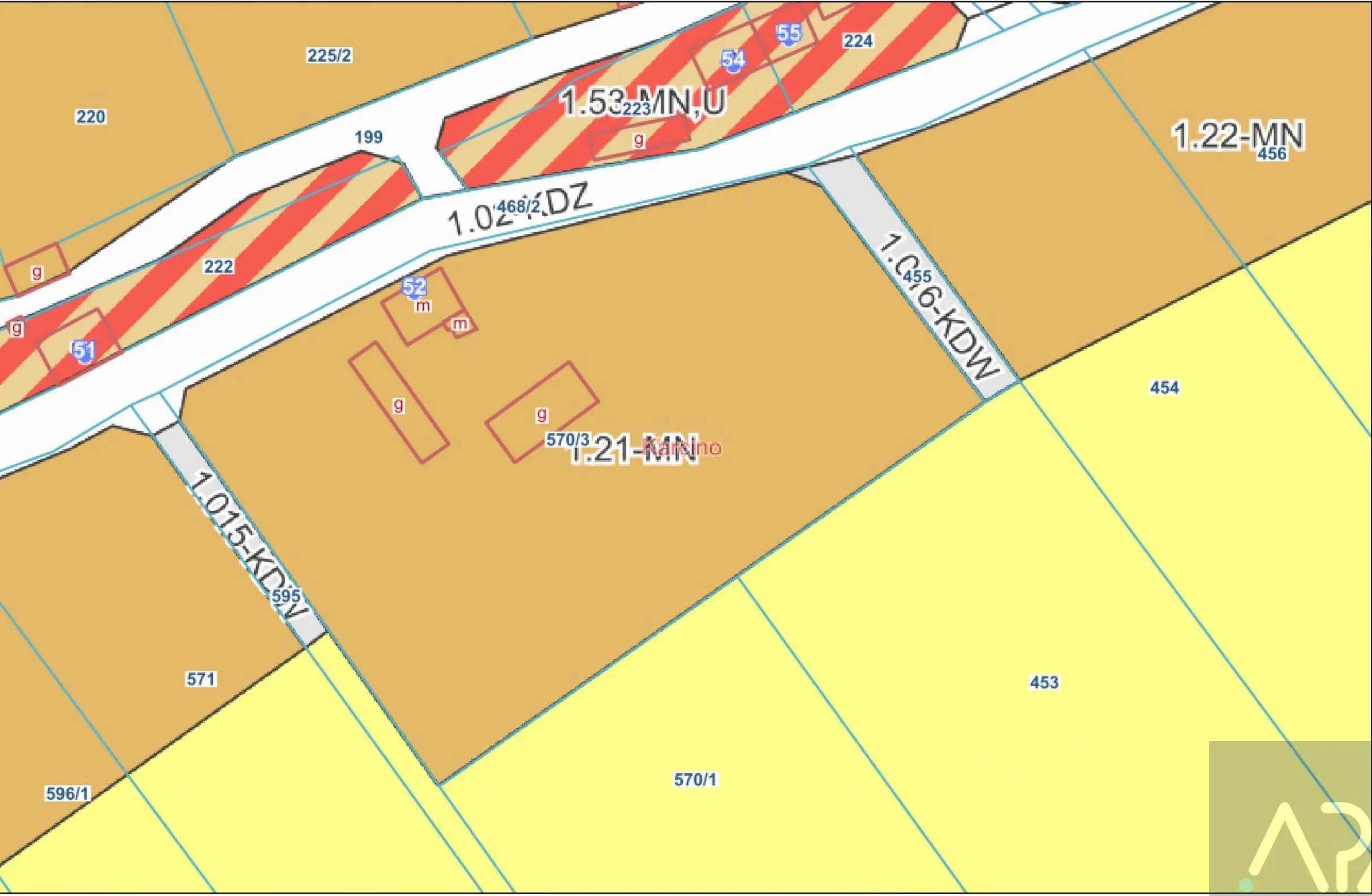 Zgodnie z planem zagospodarowania przestrzennego nieruchomość gruntowa, na której znajduje się dom oznaczona jest jako 1.21 MN - zabudowa jednorodzinna, czyli jest możliwość podziału gruntu na mniejsze działki budowlane, gdzie minimalna powierzchnia po podziale to: ok 1500 m2.
