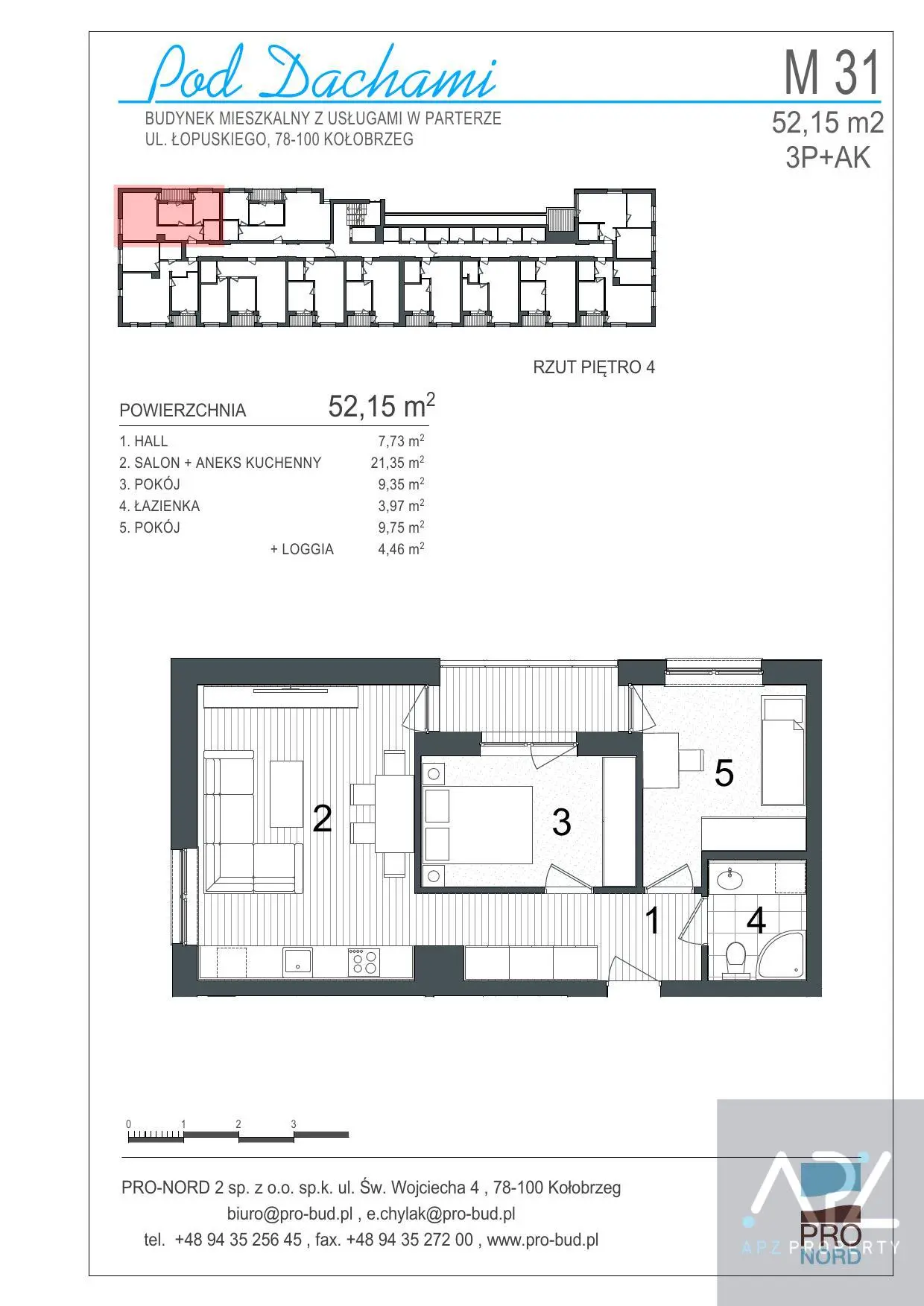 Lokal mieszkalny nr. M31 o łącznej powierzchni 52,16 m2, zlokalizowany na 3 piętrze, składa się z następujących pomieszczeń: