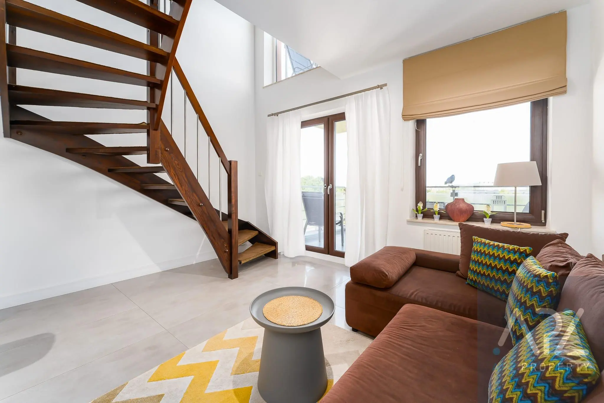 Przestronny, dwupoziomowy lokal mieszkalny o łącznej powierzchni 58,50 m2, zlokalizowany na 7 i 8 piętrze, składa się z następujących pomieszczeń: