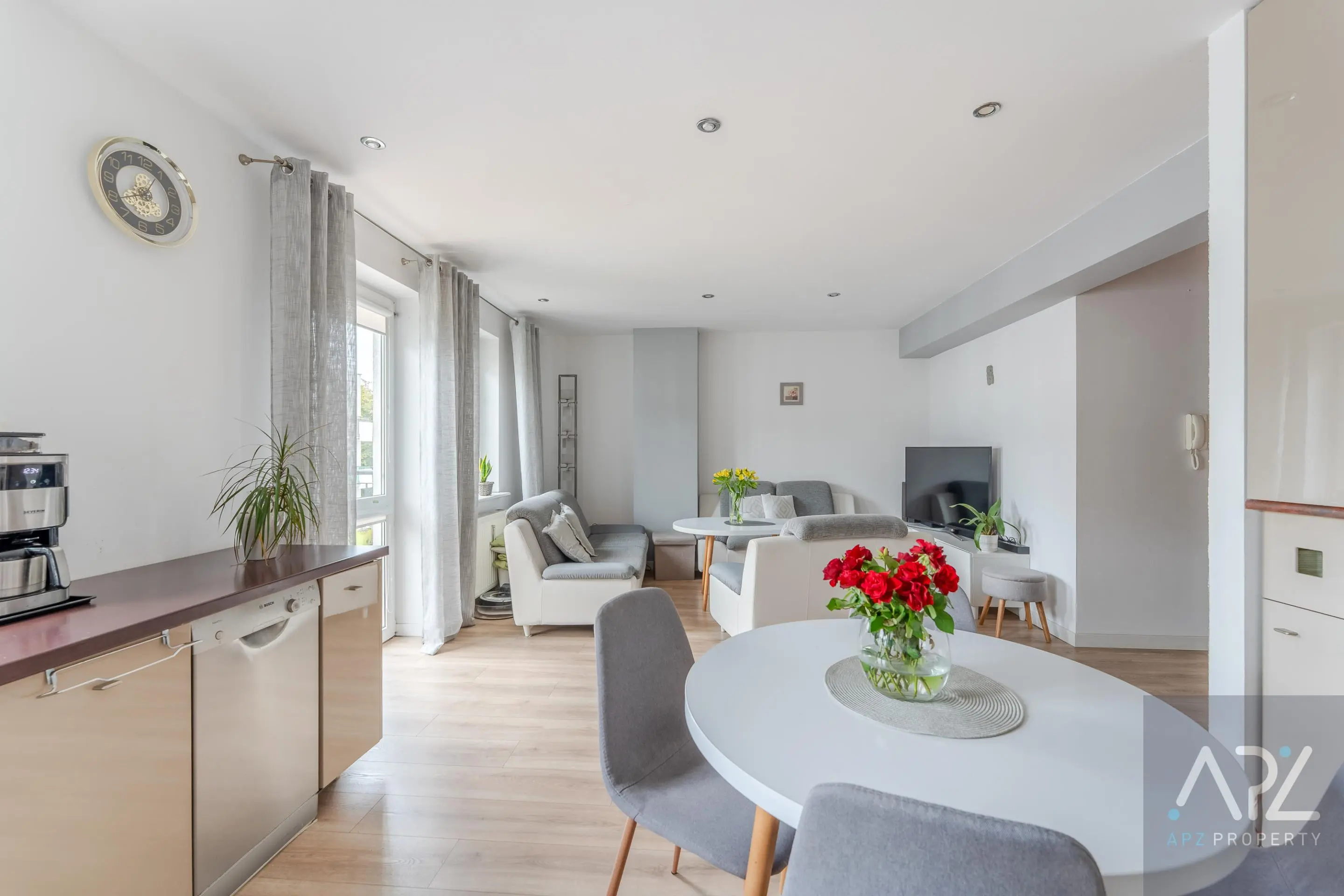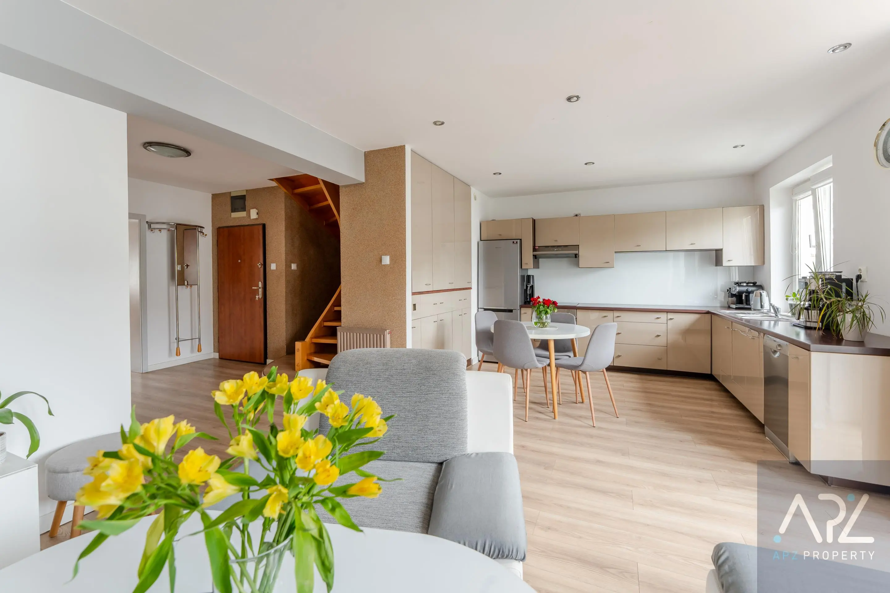 - przestronny salon z dużą i otwartą kuchnią
